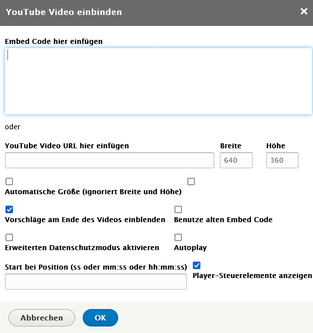 Beim Anklicken des Buttons erscheint dann dieses Dialogfeld, in das nur noch die URL-des Videos eingetragen werden muss: